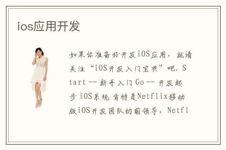 如果你準備好開發(fā)iOS應用,就請關注“iOS開發(fā)入門寶典”吧. Start -- 新手入門 Go -- 開發(fā)起步 iOS系統(tǒng) 肯特是Netflix移動版iOS開發(fā)團隊的前領導,Netflix在iOS應用開發(fā)中犯了一