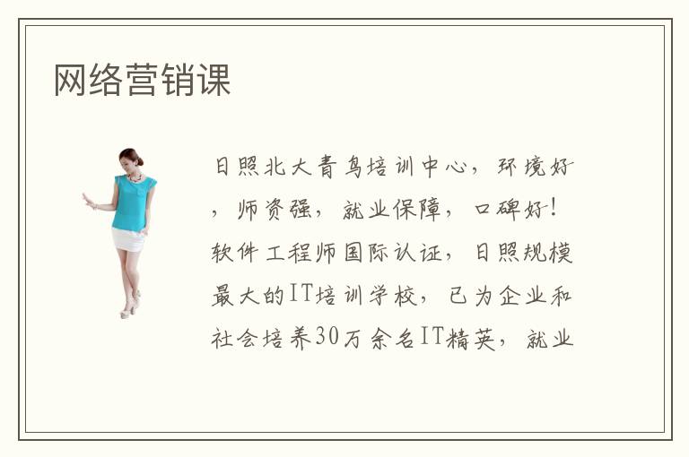 網(wǎng)絡(luò)營(yíng)銷課程,網(wǎng)絡(luò)營(yíng)銷課程是網(wǎng)絡(luò)營(yíng)銷培訓(xùn)機(jī)構(gòu)為做網(wǎng)絡(luò)營(yíng)銷的組織進(jìn)行培訓(xùn)所設(shè)計(jì)的課程。網(wǎng)絡(luò)營(yíng)銷課程內(nèi)容一般應(yīng)包括網(wǎng)絡(luò)營(yíng)銷定位、營(yíng)銷型網(wǎng)站建設(shè)、網(wǎng)絡(luò)推廣、運(yùn)營(yíng)服務(wù)