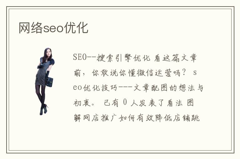 SEO--搜索引擎優(yōu)化 看這篇文章前,你敢說你懂微信運(yùn)營嗎? seo優(yōu)化技巧---文章配圖的想法與初衷。 已有 0 人發(fā)表了看法 圖解網(wǎng)店推廣如何有效降低店鋪跳失率 已有 0 人發(fā)表