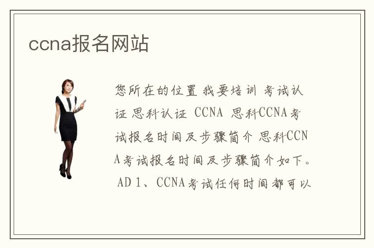 您所在的位置 我要培訓(xùn) >考試認(rèn)證 >思科認(rèn)證 > CCNA > 思科CCNA考試報名時間及步驟簡介 思科CCNA考試報名時間及步驟簡介如下。 AD 1、CCNA考試任何時間都可以報名