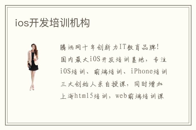 騰訊網(wǎng)十年創(chuàng)新力IT教育品牌!國內(nèi)最大iOS開發(fā)培訓(xùn)基地,專注iOS培訓(xùn)、前端培訓(xùn)、iPhone培訓(xùn)三大創(chuàng)始人親自授課,同時(shí)增加上海html5培訓(xùn),web前端培訓(xùn)課程,學(xué)員平均就