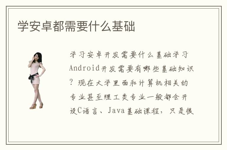 學習安卓開發(fā)需要什么基礎(chǔ)學習Android開發(fā)需要有哪些基礎(chǔ)知識?現(xiàn)在大學里面和計算機相關(guān)的專業(yè)甚至理工類專業(yè)一般都會開設(shè)C語言、Java基礎(chǔ)課程,只是很多同學在大學期