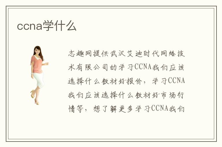 志趣網(wǎng)提供武漢艾迪時代網(wǎng)絡(luò)技術(shù)有限公司的學(xué)習(xí)CCNA我們應(yīng)該選擇什么教材好報價,學(xué)習(xí)CCNA我們應(yīng)該選擇什么教材好市場行情等,想了解更多學(xué)習(xí)CCNA我們應(yīng)該選擇什么