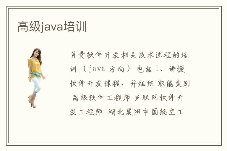 負(fù)責(zé)軟件開發(fā)相關(guān)技術(shù)課程的培訓(xùn) (java 方向) 包括 1、講授軟件開發(fā)課程,并組織 職能類別 高級(jí)軟件工程師 互聯(lián)網(wǎng)軟件開發(fā)工程師 湖北襄陽中國(guó)航空工業(yè)第