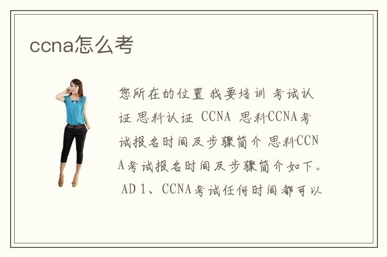 您所在的位置 我要培訓(xùn) >考試認(rèn)證 >思科認(rèn)證 > CCNA > 思科CCNA考試報名時間及步驟簡介 思科CCNA考試報名時間及步驟簡介如下。 AD 1、CCNA考試任何時間都可以報名