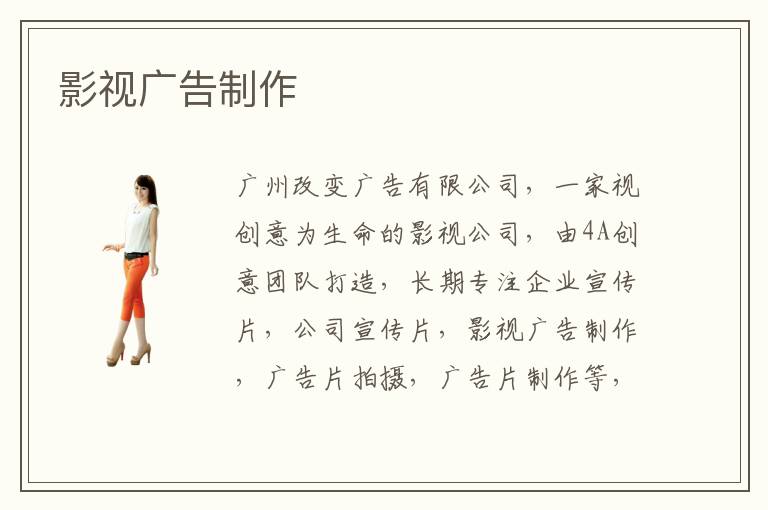 慧聰網(wǎng)影視廣告制作微門戶,集合了關(guān)于影視廣告制作的豐富內(nèi)容,為用戶提供各種影視廣告制作的供求信息價格,影視廣告制作資訊,影視廣告制作圖片,影視廣告制作廠家等服