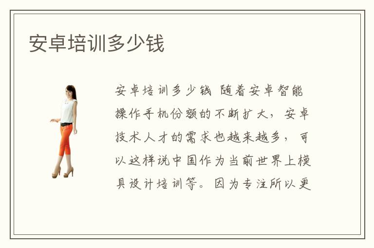 安卓培訓(xùn)多少錢 隨著安卓智能操作手機(jī)份額的不斷擴(kuò)大,安卓技術(shù)人才的需求也越來越多,可以這樣說中國(guó)作為當(dāng)前世界上