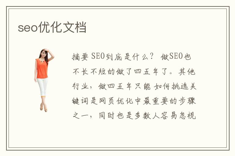 摘要 SEO到底是什么? 做SEO也不長不短的做了四五年了。其他行業(yè),做四五年只能 如何挑選關鍵詞是網(wǎng)頁優(yōu)化中最重要的步驟之一,同時也是多數(shù)人容易忽視的問題。人們