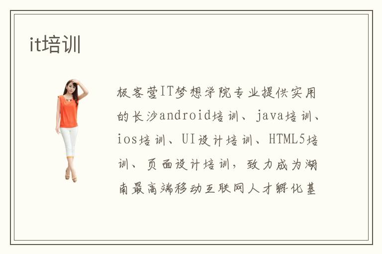 極客營IT夢想學(xué)院專業(yè)提供實用的長沙android培訓(xùn)、java培訓(xùn)、ios培訓(xùn)、UI設(shè)計培訓(xùn)、HTML5培訓(xùn)、頁面設(shè)計培訓(xùn),致力成為湖南最高端移動互聯(lián)網(wǎng)人才孵化基地,學(xué)員現(xiàn)平均就