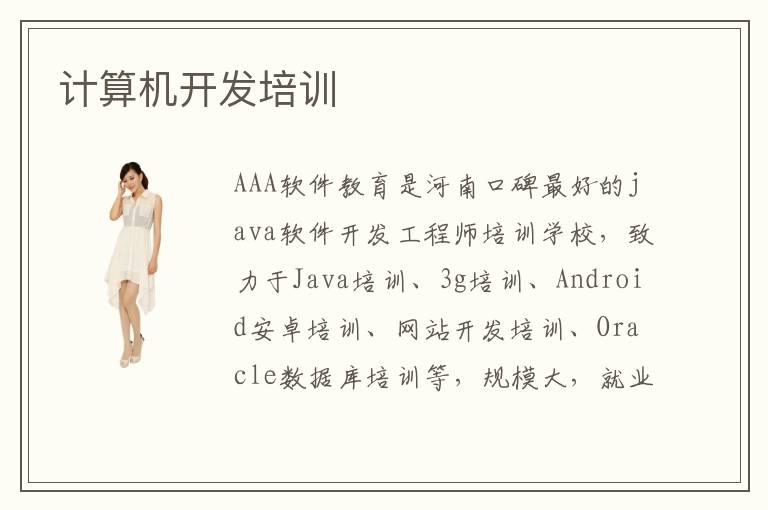 AAA軟件教育是河南口碑最好的java軟件開發(fā)工程師培訓學校,致力于Java培訓、3g培訓、Android安卓培訓、網(wǎng)站開發(fā)培訓、Oracle數(shù)據(jù)庫培訓等,規(guī)模大,就業(yè)強,口碑好,可