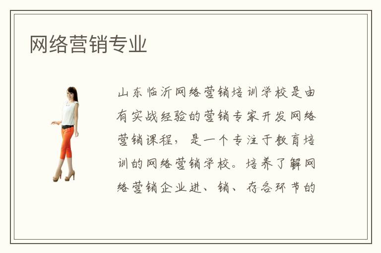 山東臨沂網(wǎng)絡(luò)營銷培訓(xùn)學(xué)校是由有實(shí)戰(zhàn)經(jīng)驗(yàn)的營銷專家開發(fā)網(wǎng)絡(luò)營銷課程,是一個專注于教育培訓(xùn)的網(wǎng)絡(luò)營銷學(xué)校。