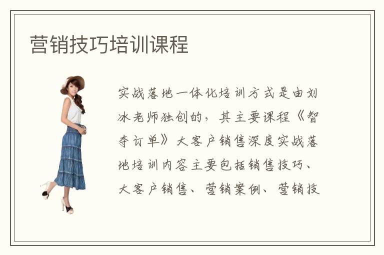 全國最大的市場營銷培訓選課中心,培訓講師由全國500強高管授課,小班授課,講師一對一輔導講解,精品市場營銷培訓課程推薦1、卓越的客戶服務技巧訓練2、出口營銷技巧