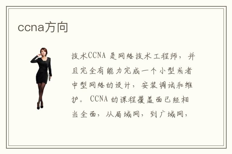 技術(shù)CCNA 是網(wǎng)絡(luò)技術(shù)工程師,并且完全有能力完成一個小型或者中型網(wǎng)絡(luò)的設(shè)計,安裝調(diào)試和維護(hù)。 CCNA 的課程覆蓋面已經(jīng)相當(dāng)全面,從局域網(wǎng),到廣域網(wǎng),從NAT 到OSPF