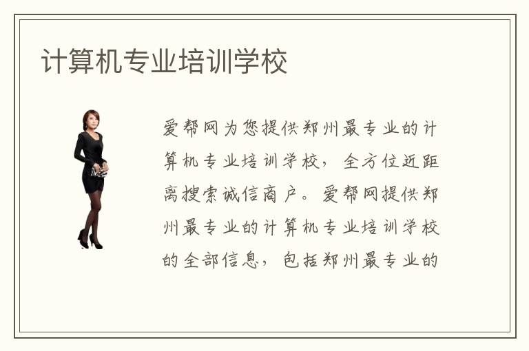 計算機(jī)專業(yè)培訓(xùn)學(xué)校頻道免費為網(wǎng)友提供計算機(jī)專業(yè)培訓(xùn)學(xué)校等信息查詢和發(fā)布服務(wù),是尋找和發(fā)布計算機(jī)專業(yè)培訓(xùn)學(xué)校信息的最佳平臺。歡迎提出寶貴的意見。電腦培訓(xùn)頻道為您