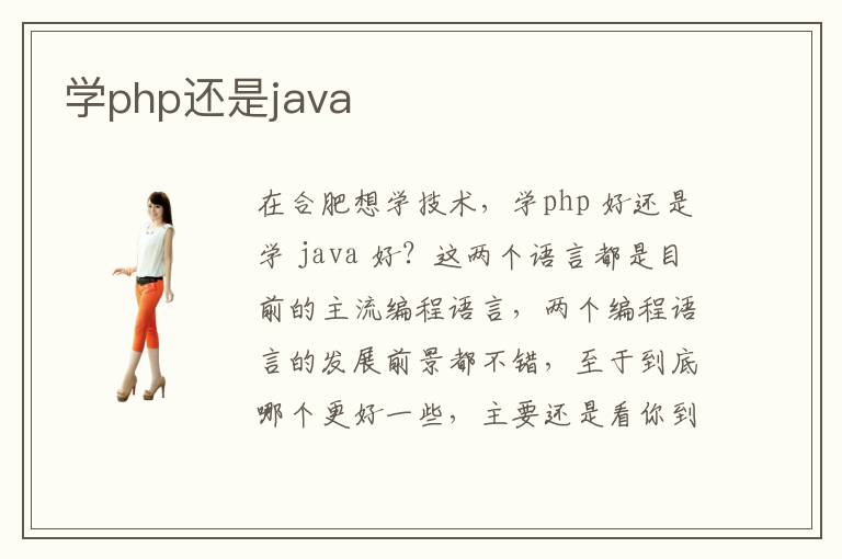 在合肥想學(xué)技術(shù),學(xué)php 好還是學(xué) java 好?這兩個(gè)語(yǔ)言都是目前的主流編程語(yǔ)言,兩個(gè)編程語(yǔ)言的發(fā)展前景都不錯(cuò),至于到底哪個(gè)更好一些,主要還是看你到底想從事那個(gè)方向的開