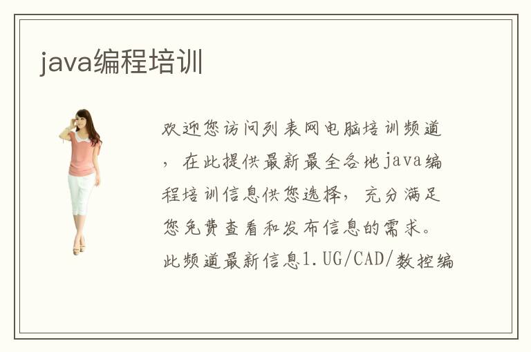 歡迎您訪問列表網(wǎng)電腦培訓頻道,在此提供最新最全各地java編程培訓信息供您選擇,充分滿足您免費查看和發(fā)布信息的需求。此頻道最新信息1.UG/CAD/數(shù)控編程培訓;2.浦東
