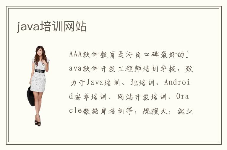 AAA軟件教育是河南口碑最好的java軟件開發(fā)工程師培訓(xùn)學(xué)校,致力于Java培訓(xùn)、3g培訓(xùn)、Android安卓培訓(xùn)、網(wǎng)站開發(fā)培訓(xùn)、Oracle數(shù)據(jù)庫培訓(xùn)等,規(guī)模大,就業(yè)強(qiáng),口碑好,可