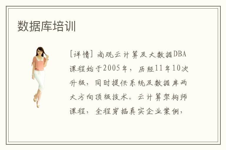 [詳情] 尚觀云計算及大數據DBA課程始于2005年,歷經11年10次升級,同時提供系統及數據庫兩大方向頂級技術。云計算架構師課程,全程穿插真實企業(yè)案例,配套大型企業(yè)真實