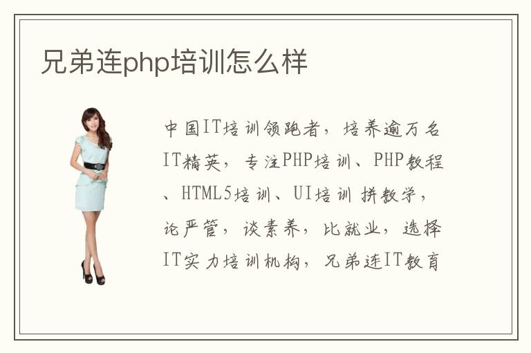 中國IT培訓(xùn)領(lǐng)跑者,培養(yǎng)逾萬名IT精英,專注PHP培訓(xùn)、PHP教程、HTML5培訓(xùn)、UI培訓(xùn) 拼教學(xué),論嚴(yán)管,談素養(yǎng),比就業(yè),選擇IT實力培訓(xùn)機構(gòu),兄弟連IT教育,就夠了!