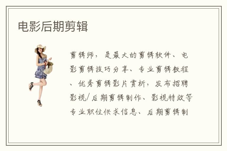 剪輯師,是最大的剪輯軟件、電影剪輯技巧分享、專業(yè)剪輯教程、優(yōu)秀剪輯影片賞析,發(fā)布招聘影視/后期剪輯制作、影視特效等專業(yè)職位供求信息、后期剪輯制作培訓(xùn)等信
