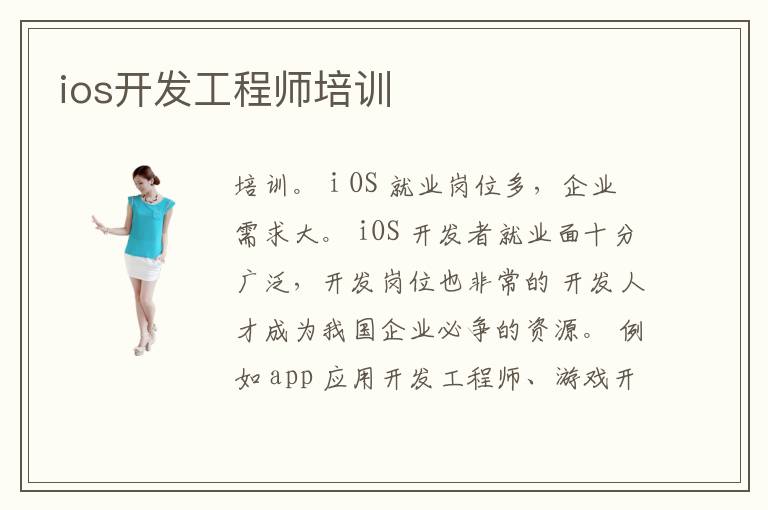 培訓(xùn)。 i OS 就業(yè)崗位多,企業(yè)需求大。 iOS 開發(fā)者就業(yè)面十分廣泛,開發(fā)崗位也非常的 開發(fā)人才成為我國企業(yè)必爭的資源。 例如 app 應(yīng)用開發(fā)工程師、游戲開發(fā)工程師 、測