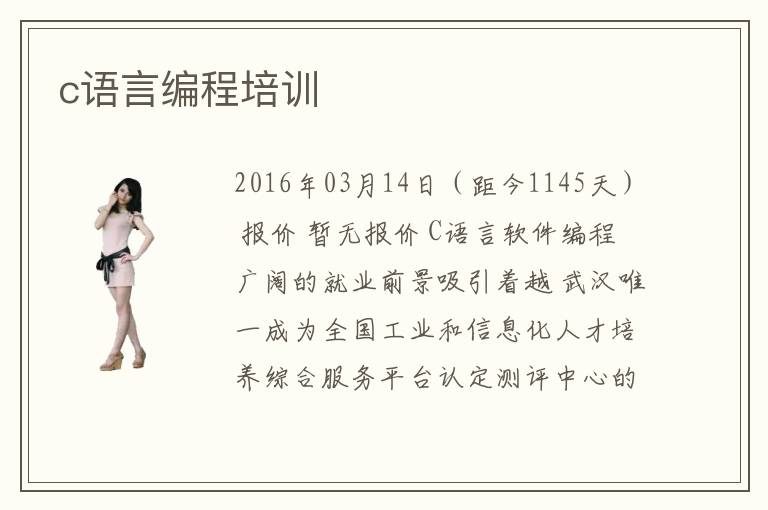 2016年03月14日(距今1145天) 報價 暫無報價 C語言軟件編程廣闊的就業(yè)前景吸引著越 武漢唯一成為全國工業(yè)和信息化人才培養(yǎng)綜合服務(wù)平臺認(rèn)定測評中心的培訓(xùn)機(jī)構(gòu) 湖北唯一