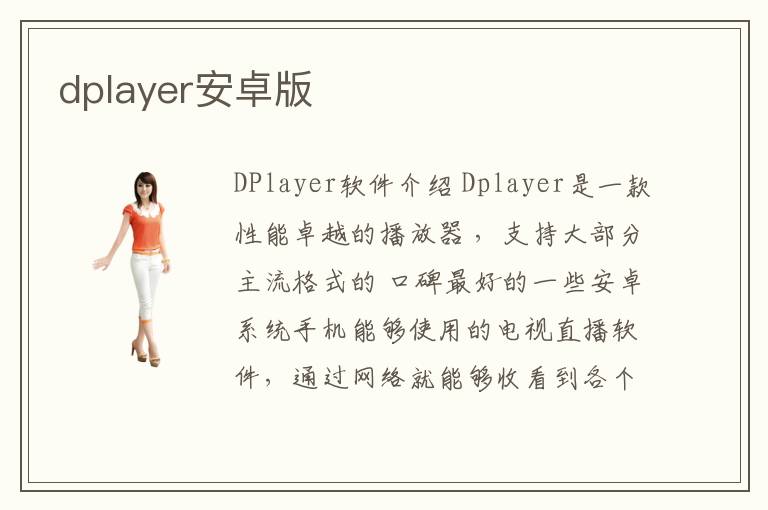 DPlayer軟件介紹 Dplayer是一款性能卓越的播放器 ,支持大部分主流格式的 口碑最好的一些安卓系統(tǒng)手機(jī)能夠使用的電視直播軟件,通過網(wǎng)絡(luò)就能夠收看到各個(gè)電視