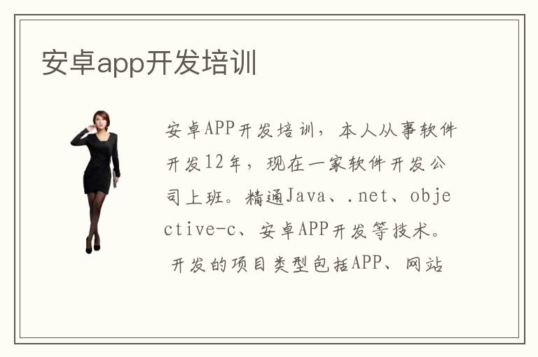 安卓APP開發(fā)培訓(xùn),本人從事軟件開發(fā)12年,現(xiàn)在一家軟件開發(fā)公司上班。精通Java、.net、objective-c、安卓APP開發(fā)等技術(shù)。 開發(fā)的項目類型包括APP、網(wǎng)站、應(yīng)用系統(tǒng)程序等