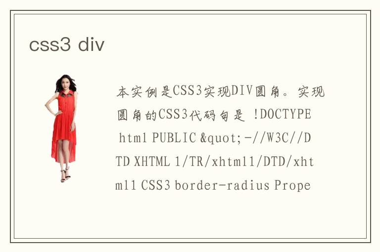 本實例是CSS3實現(xiàn)DIV圓角。實現(xiàn)圓角的CSS3代碼句是 <!DOCTYPE html PUBLIC \"-//W3C//DTD XHTML 1/TR/xhtml1/DTD/xhtml1