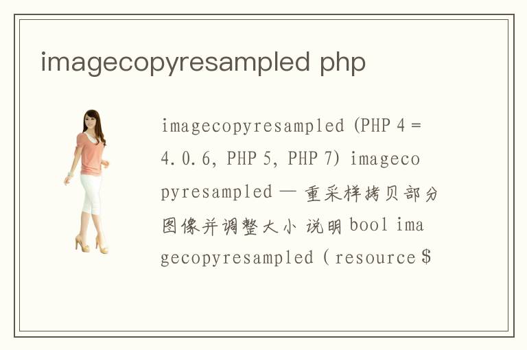 imagecopyresampled. (PHP 4 >= 4.0.6, PHP 5). imagecopyresampled -- Copy and resize part of an image with resampling