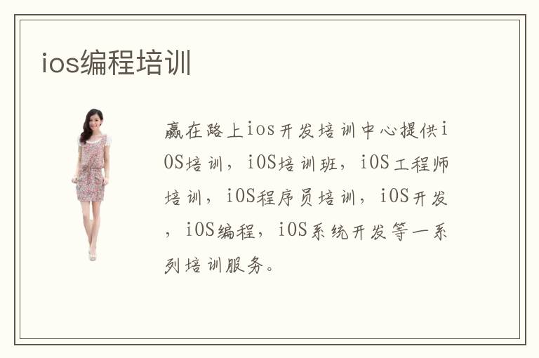 贏在路上ios開(kāi)發(fā)培訓(xùn)中心提供iOS培訓(xùn),iOS培訓(xùn)班,iOS工程師培訓(xùn),iOS程序員培訓(xùn),iOS開(kāi)發(fā),iOS編程,iOS系統(tǒng)開(kāi)發(fā)等一系列培訓(xùn)服務(wù)。
