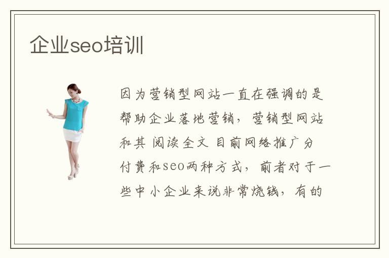 因?yàn)闋I(yíng)銷型網(wǎng)站一直在強(qiáng)調(diào)的是幫助企業(yè)落地營(yíng)銷,營(yíng)銷型網(wǎng)站和其 閱讀全文 目前網(wǎng)絡(luò)推廣分付費(fèi)和seo兩種方式,前者對(duì)于一些中小企業(yè)來說非常燒錢,有的企業(yè)也燒不起。那我