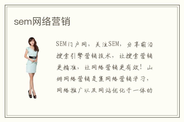 SEM門戶網(wǎng),關(guān)注SEM,分享前沿搜索引擎營銷技術(shù),讓搜索營銷更精準(zhǔn),讓網(wǎng)絡(luò)營銷更有效!