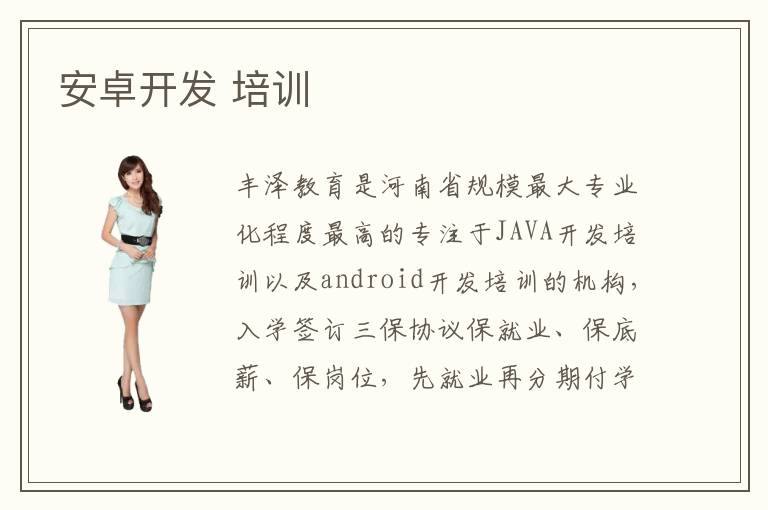 豐澤教育是河南省規(guī)模最大專業(yè)化程度最高的專注于JAVA開發(fā)培訓(xùn)以及android開發(fā)培訓(xùn)的機(jī)構(gòu),入學(xué)簽訂三保協(xié)議保就業(yè)、保底薪、保崗位,先就業(yè)再分期付學(xué)費(fèi)!