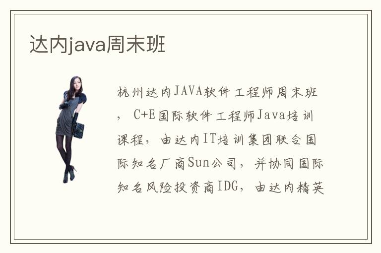 杭州達(dá)內(nèi)——JAVA軟件工程師周末班,達(dá)內(nèi)攜手國際Java廠商Sun公司推出 C+E國際軟件工程師Java培訓(xùn)業(yè)余班 C+E國際軟件工程師Java培訓(xùn)課程,由達(dá)內(nèi)IT培訓(xùn)集團(tuán)聯(lián)合國際