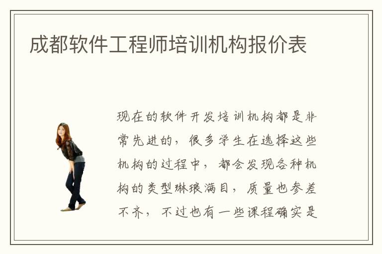 現(xiàn)在的軟件開(kāi)發(fā)培訓(xùn)機(jī)構(gòu)都是非常先進(jìn)的,很多學(xué)生在選擇這些機(jī)構(gòu)的過(guò)程中,都會(huì)發(fā)現(xiàn)各種機(jī)構(gòu)的類型琳瑯滿目,質(zhì)量也參差不齊,不過(guò)也有一些課程確實(shí)是能夠滿足大多數(shù)的要求和學(xué)習(xí)的標(biāo)準(zhǔn),希望可以得到更多應(yīng)用,以后發(fā)揮出很好的軟件開(kāi)發(fā)應(yīng)用成績(jī)。成都軟件工程師培訓(xùn)機(jī)構(gòu)報(bào)價(jià)表可能是3000到1萬(wàn),但是因?yàn)橛行┸浖こ處熍嘤?xùn)機(jī)構(gòu)優(yōu)點(diǎn)有非常大的差異,比如說(shuō)水準(zhǔn)高,要更加關(guān)注與應(yīng)用的實(shí)踐,軟件工程師的培訓(xùn)價(jià)格會(huì)有上漲。軟件工程師培訓(xùn)機(jī)構(gòu)好嗎,有些軟件工程師的內(nèi)容通常是全面的,讓學(xué)生從簡(jiǎn)單的到復(fù)雜,而且并不會(huì)給學(xué)生帶來(lái)比較大的壓力,速度也是從慢到快,因此學(xué)生接受得比較好,并不會(huì)擔(dān)心有太多學(xué)習(xí)困難和障礙的問(wèn)題,又可以把自己的技能水平拉高一個(gè)檔次。