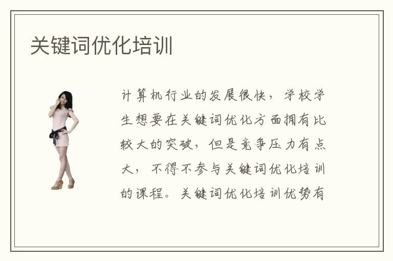 計(jì)算機(jī)行業(yè)的發(fā)展很快,學(xué)校學(xué)生想要在關(guān)鍵詞優(yōu)化方面擁有比較大的突破,但是競(jìng)爭(zhēng)壓力有點(diǎn)大,不得不參與關(guān)鍵詞優(yōu)化培訓(xùn)的課程。關(guān)鍵詞優(yōu)化培訓(xùn)優(yōu)勢(shì)有哪些,關(guān)鍵是優(yōu)化培訓(xùn)機(jī)構(gòu)的主要優(yōu)勢(shì)是課程非常完善,基本可以掃除學(xué)生遇到的各種難題和障礙,知識(shí)結(jié)構(gòu)變得更加鞏固。另外,老師也可以將很多細(xì)致的課程呈現(xiàn)給學(xué)生,學(xué)生會(huì)得到很多優(yōu)質(zhì)的進(jìn)步機(jī)會(huì)。關(guān)鍵詞優(yōu)化培訓(xùn)方法主要是在線指導(dǎo)、上門指導(dǎo)、現(xiàn)場(chǎng)指導(dǎo)等等。有些學(xué)生總是擔(dān)心學(xué)習(xí)成績(jī)不理想,考試水平發(fā)揮不出來,學(xué)習(xí)過程總是遇到難題,無(wú)法及時(shí)解決。不過都沒有必要緊張與擔(dān)憂,因?yàn)槔蠋煏?huì)給予非常詳細(xì)的講解,整個(gè)培訓(xùn)過程中,提供清晰的輔導(dǎo),明確學(xué)習(xí)的目標(biāo)和任務(wù),所以總是可以發(fā)揮很好的成績(jī),學(xué)習(xí)成果都會(huì)更顯著。