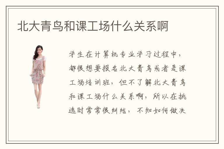 學生在計算機專業(yè)學習過程中,都很想要報名北大青鳥或者是課工場培訓(xùn)班,但不了解北大青鳥和課工場什么關(guān)系啊,所以在挑選時常常很糾結(jié),不知如何做決定,害怕找到不太靠譜的機構(gòu),沒有完善的補習課程和教學的方案。北大青鳥成績相當優(yōu)越,因為培訓(xùn)班的學生非常主動,老師也鼓勵學生多多交流,共同探討各種技術(shù)解題思路,將各種繁瑣的內(nèi)容簡單化,通過清晰的方式呈現(xiàn)給學生。北大青鳥靠譜不,北大青鳥專業(yè)補習班有嚴謹?shù)慕虒W思路,提供個性化補習方案,精心挑選培訓(xùn)課程以及課后練習,糾正學習過程遇到的錯題。另外,老師很重視學生的體驗以及學習心態(tài),在剛開始培訓(xùn)階段,會從簡單的技術(shù)內(nèi)容開始講解,然后再逐漸增加學習的難度,使學生一步一步適應(yīng),得到一點一滴的進步。