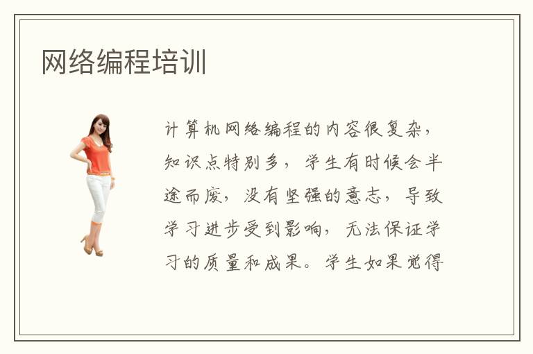 計(jì)算機(jī)網(wǎng)絡(luò)編程的內(nèi)容很復(fù)雜,知識點(diǎn)特別多,學(xué)生有時(shí)候會半途而廢,沒有堅(jiān)強(qiáng)的意志,導(dǎo)致學(xué)習(xí)進(jìn)步受到影響,無法保證學(xué)習(xí)的質(zhì)量和成果。學(xué)生如果覺得自學(xué)非常困難,沒有辦法完成學(xué)習(xí)的規(guī)劃和任務(wù),可以參與網(wǎng)絡(luò)編程培訓(xùn),挑選專業(yè)的教學(xué)課程,從而在原有的基礎(chǔ)上,要有更好的進(jìn)步和提升。網(wǎng)絡(luò)編程輔導(dǎo)難不難,多數(shù)課程都不會很難,主要就是從簡單的開始學(xué)習(xí),然后逐漸增加難度。網(wǎng)絡(luò)編程培訓(xùn)師資比較優(yōu)越,許多學(xué)生在網(wǎng)絡(luò)編程學(xué)習(xí)時(shí),會感覺到迷茫和焦慮,不知道如何調(diào)整心理狀態(tài),而且學(xué)習(xí)動力比較少,所以會遇到許許多多的難題,但是補(bǔ)習(xí)機(jī)構(gòu)會幫助學(xué)生快速分析,選擇個(gè)性化比較突出的課程,也會針對學(xué)員的基礎(chǔ),選擇對應(yīng)性輔導(dǎo)方式,使大家的應(yīng)用和專業(yè)能力都有變化。