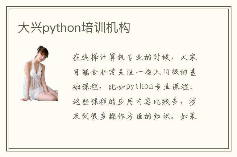在選擇計算機(jī)專業(yè)的時候,大家可能會非常關(guān)注一些入門級的基礎(chǔ)課程,比如python專業(yè)課程。這些課程的應(yīng)用內(nèi)容比較多,涉及到很多操作方面的知識。如果學(xué)生不理解,會遇到很多專業(yè)難題,無法為未來發(fā)展鋪平道路。所以學(xué)生要謹(jǐn)慎,多多了解各種學(xué)習(xí)方法,掌握python課題的解題方案的思路。大興python培訓(xùn)機(jī)構(gòu)有非常好的輔導(dǎo)措施,優(yōu)化大家的學(xué)習(xí)能力,可提供大量的學(xué)習(xí)資源。python培訓(xùn)機(jī)構(gòu)大概多久,學(xué)習(xí)python專業(yè)時間可能是1個月到4個月之間,主要是學(xué)生報名的課程和個人的學(xué)習(xí)方向等等都不太一樣,學(xué)習(xí)時間會有一點點差異。python培訓(xùn)機(jī)構(gòu)嚴(yán)格么,大多數(shù)培訓(xùn)機(jī)構(gòu)的老師都會嚴(yán)格要求學(xué)生完成每一個階段的課程,課后做好復(fù)習(xí)和總結(jié)的工作,掌握更多有用的學(xué)習(xí)方法和專業(yè)技能。