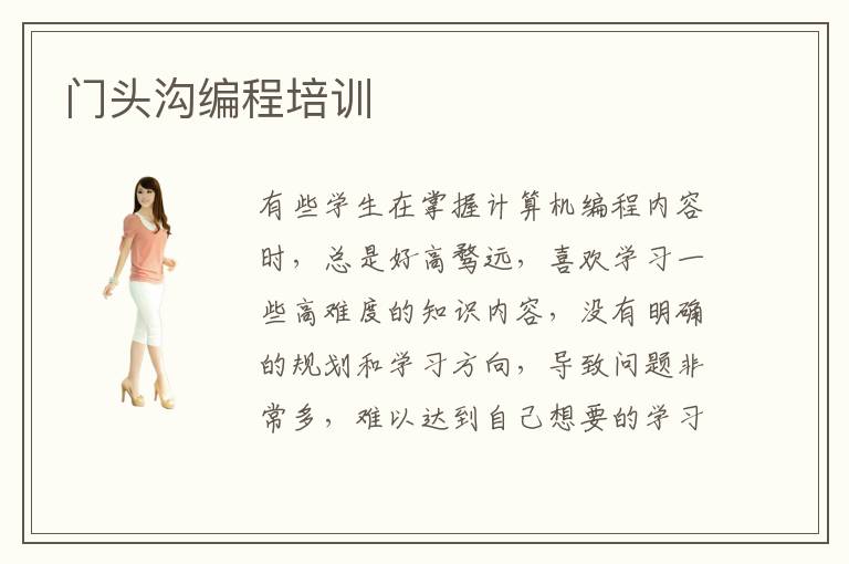 有些學生在掌握計算機編程內容時,總是好高騖遠,喜歡學習一些高難度的知識內容,沒有明確的規(guī)劃和學習方向,導致問題非常多,難以達到自己想要的學習標準。部分學生想盡快改善這些情況,所以報名門頭溝編程培訓課程,由老師來制定比較科學的輔導方案。編程專業(yè)就業(yè)不算難,許多學生可以找到滿意的工作,尤其是報名計算機編程學校之后,對以后的學習和成長都有重要的指導作用。其實有些學生找不到工作,會變得非常困惑,只要報名一些計算機編程輔導機構,很快即可優(yōu)化個人的技術能力,找工作會更得心應手。編程培訓多少費用,大概的收費標準在3000~8000元,但這些課程的費用參差不齊,主要原因就是課程質量五花八門,并不一定能夠發(fā)揮出作用,大家要謹慎對比。
