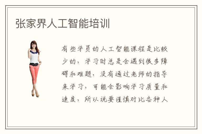 有些學(xué)員的人工智能課程是比較少的,學(xué)習(xí)時總是會遇到很多障礙和難題,沒有通過老師的指導(dǎo)來學(xué)習(xí),可能會影響學(xué)習(xí)質(zhì)量和速度,所以說要謹慎對比各種人工智能課程的優(yōu)缺點,選擇優(yōu)質(zhì)的人工智能輔導(dǎo)內(nèi)容,從而發(fā)揮良好的競爭優(yōu)勢。對于很多學(xué)生來說,都希望報名張家界人工智能培訓(xùn)機構(gòu),得到更多細致的人工智能輔導(dǎo)和應(yīng)用經(jīng)驗。人工智能培訓(xùn)學(xué)校哪些好,選擇人工智能培訓(xùn)學(xué)校要考慮綜合實力、老師的水準以及教學(xué)方案、口碑等等。要是口碑不好,綜合實力很糟糕,可能是培訓(xùn)機構(gòu)的能力不夠強。人工智能培訓(xùn)有什么幫助,人工智能培訓(xùn)班的主要作用是采用激勵和獎勵等方法,幫助學(xué)生集中注意力,調(diào)動積極性,學(xué)習(xí)更多重要的前沿知識,完成老師的任務(wù)和計劃,養(yǎng)成長遠學(xué)習(xí)的習(xí)慣。