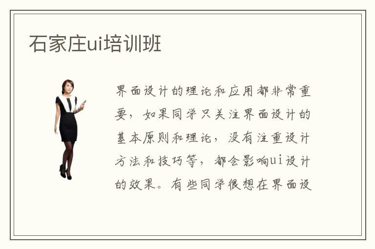 界面設(shè)計(jì)的理論和應(yīng)用都非常重要,如果同學(xué)只關(guān)注界面設(shè)計(jì)的基本原則和理論,沒有注重設(shè)計(jì)方法和技巧等,都會影響ui設(shè)計(jì)的效果。有些同學(xué)很想在界面設(shè)計(jì)獲得優(yōu)越的競爭力,但沒有系統(tǒng)的訓(xùn)練,確實(shí)很難在技術(shù)方面有突出的表現(xiàn)。這時(shí)可選擇石家莊ui培訓(xùn)班,老師可介紹重點(diǎn)ui設(shè)計(jì)的培訓(xùn)項(xiàng)目,培養(yǎng)更多優(yōu)秀的實(shí)用性人才。ui培訓(xùn)班零基礎(chǔ)教程特別適合剛?cè)腴T的同學(xué),老師會根據(jù)大家的基礎(chǔ),安排基礎(chǔ)性的課程,也會控制好設(shè)計(jì)培訓(xùn)的速度。使大家可以擁有更多時(shí)間去學(xué)習(xí),提高ui技術(shù)的成績和設(shè)計(jì)效率。ui培訓(xùn)班哪些好,選擇ui培訓(xùn)班應(yīng)看看教學(xué)能力、培訓(xùn)方法以及輔導(dǎo)方案。有些ui學(xué)校的教學(xué)內(nèi)容非常全面,培訓(xùn)方法也特別科學(xué),可以結(jié)合大家的學(xué)習(xí)習(xí)慣來培養(yǎng)。