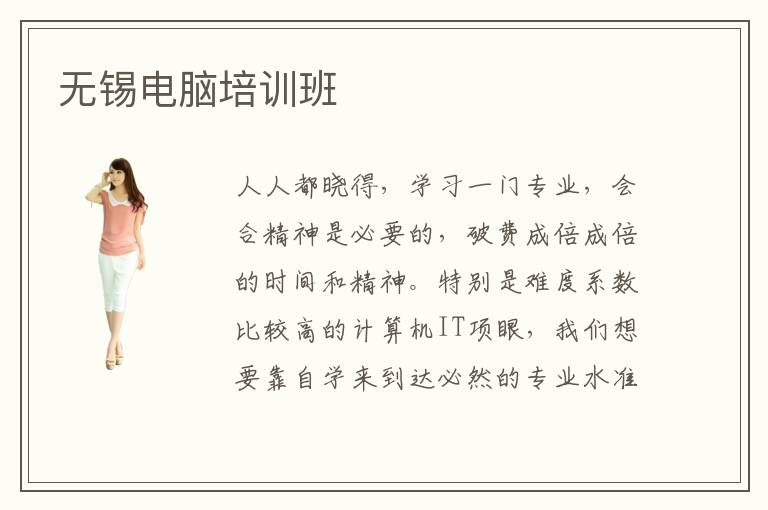 人人都曉得,學(xué)習(xí)一門專業(yè),會(huì)合精神是必要的,破費(fèi)成倍成倍的時(shí)間和精神。特別是難度系數(shù)比較高的計(jì)算機(jī)IT項(xiàng)眼,我們想要靠自學(xué)來到達(dá)必然的專業(yè)水準(zhǔn)是有難度的,以是議決無錫計(jì)算機(jī)培訓(xùn)班進(jìn)而接管專業(yè)的培訓(xùn),這給我們省下了走更多曲路的時(shí)間,學(xué)習(xí)效力很大程度地挑升。計(jì)算機(jī)培訓(xùn)學(xué)校無錫分校首要有哪些優(yōu)異一點(diǎn)的機(jī)構(gòu)無錫計(jì)算機(jī)培訓(xùn)費(fèi)用大提要多少錢無錫計(jì)算機(jī)培訓(xùn)班推薦電腦學(xué)校