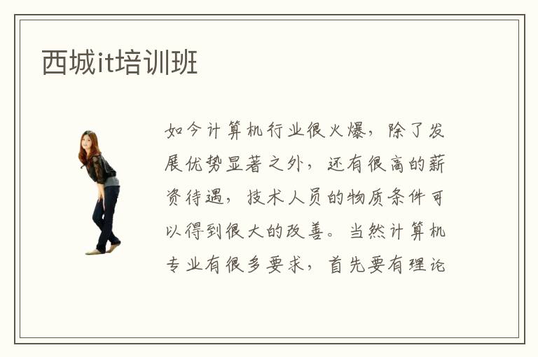 如今計算機(jī)行業(yè)很火爆,除了發(fā)展優(yōu)勢顯著之外,還有很高的薪資待遇,技術(shù)人員的物質(zhì)條件可以得到很大的改善。當(dāng)然計算機(jī)專業(yè)有很多要求,首先要有理論積累,了解應(yīng)用知識,而且要親自動手實踐,完成各種計算機(jī)行業(yè)的重點項目。要是連這些要求都無法達(dá)到,同學(xué)除了自學(xué)以外,還要調(diào)整一下思路,看看是否可以嘗試西城it培訓(xùn)班。it培訓(xùn)班如何,一般情況下培訓(xùn)機(jī)構(gòu)的水平都不錯,也會認(rèn)真負(fù)責(zé),在幾個月的課程訓(xùn)練當(dāng)中,可以展示大量的it培訓(xùn)班基礎(chǔ)課程。當(dāng)然如果個人掌握效果不錯,也有很強(qiáng)的技術(shù)競爭力,老師還會介紹許多進(jìn)階課程,使同學(xué)在計算機(jī)行業(yè)擁有更出色的優(yōu)勢。有些同學(xué)更注重應(yīng)用實踐,但是缺乏應(yīng)用設(shè)備,成績一直不好,而輔導(dǎo)機(jī)構(gòu)的應(yīng)用設(shè)備更先進(jìn),應(yīng)用課程也會非常全面。
