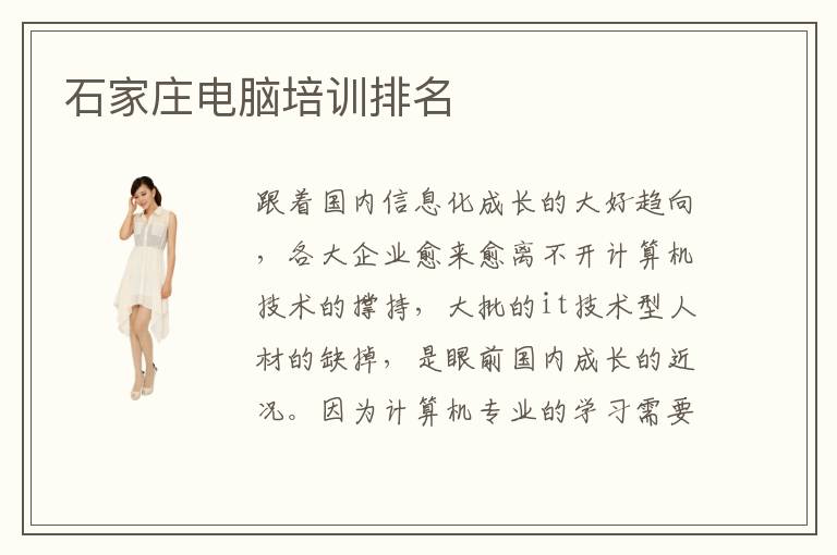 跟著國(guó)內(nèi)信息化成長(zhǎng)的大好趨向,各大企業(yè)愈來愈離不開計(jì)算機(jī)技術(shù)的撐持,大批的it技術(shù)型人材的缺掉,是眼前國(guó)內(nèi)成長(zhǎng)的近況。因?yàn)橛?jì)算機(jī)專業(yè)的學(xué)習(xí)需要學(xué)生具有清楚的邏輯思惟懂得才能,以及必然的闡發(fā)才能,沒有專業(yè)的講授是很難實(shí)現(xiàn)it專業(yè)的學(xué)習(xí)的。石家莊電腦培訓(xùn)電腦培訓(xùn)排名表上首屈一指的培訓(xùn)機(jī)構(gòu)都有著本身單特的講授體例,成績(jī)了學(xué)生成為一位優(yōu)異it精英的胡想。石家莊電腦培訓(xùn)排名推薦電腦學(xué)校