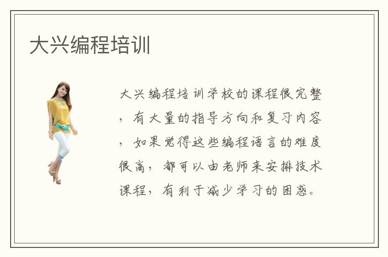 大興編程培訓(xùn)編程培訓(xùn)學(xué)校的課程很完整,有大量的指導(dǎo)方向和復(fù)習(xí)內(nèi)容,如果覺得這些編程語言的難度很高,都可以由老師來安排技術(shù)課程,有利于減少學(xué)習(xí)的困惑。編程培訓(xùn)有什么用,編程培訓(xùn)機(jī)構(gòu)的作用是讓大家清晰了解這些編程語言的作用特點(diǎn)以及學(xué)習(xí)的方法,幫助大家分析進(jìn)步的方向,掌握前沿技術(shù),以免陷入困境。在輔導(dǎo)班的作用下,同學(xué)需要掌握數(shù)據(jù)結(jié)構(gòu),程序設(shè)計(jì),數(shù)據(jù)原理以及數(shù)據(jù)庫應(yīng)用等知識(shí),然后結(jié)合一些基本的應(yīng)用項(xiàng)目,改善個(gè)人的專業(yè)應(yīng)用水準(zhǔn)。編程工程師的工作很豐富,比如要針對(duì)不同項(xiàng)目,找到合適的編程語言,然后優(yōu)化工作的效率。因?yàn)橛行┚幊贪姹驹絹碓蕉啵碌念l率也逐步提高。因此作為專業(yè)的人員,應(yīng)該要不斷更新知識(shí)庫,彌補(bǔ)知識(shí)的漏洞。