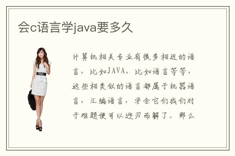 計算機相關(guān)專業(yè)有很多相近的語言,比如JAVA,比如語言等等,這些相類似的語言都屬于機器語言,匯編語言,學(xué)會它們我們對于難題便可以迎刃而解了。那么,學(xué)會了c語言的人,對于學(xué)習(xí)新的JAVA能不能輕松一些呢?學(xué)習(xí)c語言對學(xué)習(xí)JAVA腳本編輯有什么實質(zhì)性的幫助嗎?c語言與JAVA語言的相似之處有哪些?學(xué)會c語言的靈活運用,是不是對JAVA的學(xué)習(xí)有著異曲同工之處?