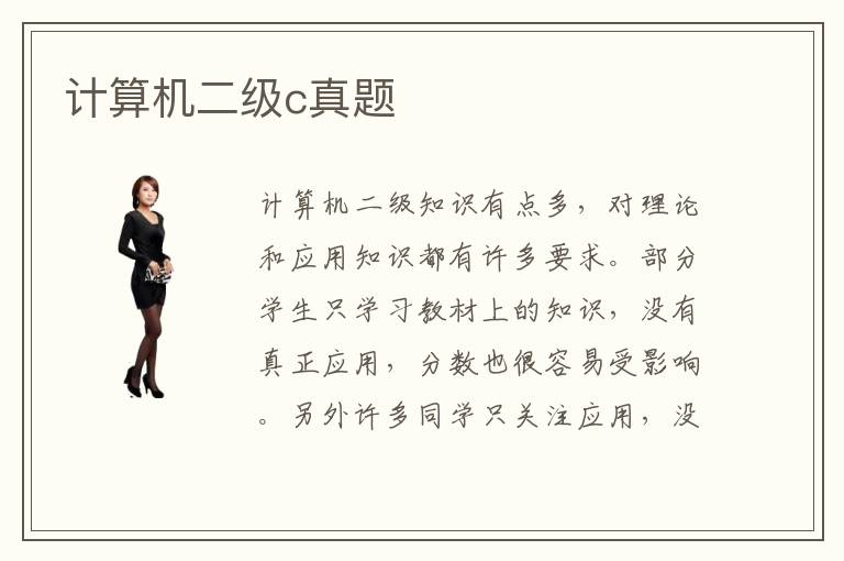 計(jì)算機(jī)二級(jí)知識(shí)有點(diǎn)多,對(duì)理論和應(yīng)用知識(shí)都有許多要求。部分學(xué)生只學(xué)習(xí)教材上的知識(shí),沒(méi)有真正應(yīng)用,分?jǐn)?shù)也很容易受影響。另外許多同學(xué)只關(guān)注應(yīng)用,沒(méi)有學(xué)習(xí)書(shū)本上的內(nèi)容,缺乏理論作為支撐,考試成績(jī)也很普通。為了取得高分,學(xué)生要從多個(gè)方面和層次出發(fā),幫助計(jì)算機(jī)理論知識(shí)和應(yīng)用重點(diǎn),有必要的情況下,可以多練習(xí)計(jì)算機(jī)二級(jí)c真題,從而在考試中取得滿意分?jǐn)?shù)。計(jì)算機(jī)二級(jí)c簡(jiǎn)單嗎,計(jì)算機(jī)二級(jí)c語(yǔ)言考試的難度并不大,同學(xué)可以針對(duì)考試重點(diǎn)和教材進(jìn)行詳細(xì)的復(fù)習(xí),然后熟練各種知識(shí),進(jìn)行專(zhuān)業(yè)的實(shí)際操作,提升操作的水平,可以快速取得更好成績(jī)。計(jì)算機(jī)二級(jí)c如何報(bào)名,報(bào)名計(jì)算機(jī)二級(jí)c語(yǔ)言考試時(shí),可以通過(guò)網(wǎng)上或者在現(xiàn)場(chǎng)報(bào)名,然后繳納相關(guān)的費(fèi)用。