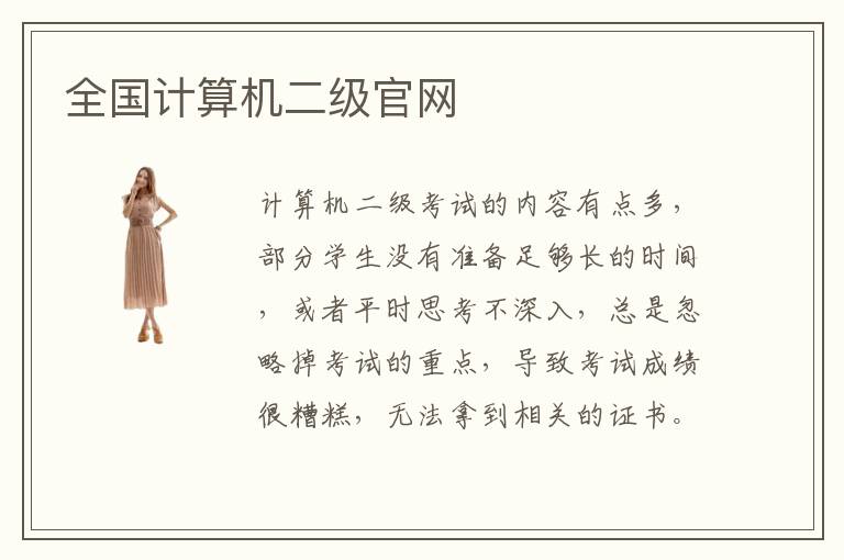 計算機二級考試的內(nèi)容有點多,部分學(xué)生沒有準(zhǔn)備足夠長的時間,或者平時思考不深入,總是忽略掉考試的重點,導(dǎo)致考試成績很糟糕,無法拿到相關(guān)的證書。若學(xué)生想通過計算機二級考試,可以多了解一下全國計算機二級官網(wǎng)提供的考試大綱,明確考試范圍和方向,這樣備考過程會更有方向感,也能大大提高效率,減少復(fù)習(xí)過程的岔路。有些同學(xué)不管怎么努力,還是看不到進步,往往會有點灰心。不過大家不必這樣,可以報名全國計算機二級的視頻教程,老師把重要的培訓(xùn)方案和教學(xué)思路帶給大家,只要認(rèn)真做準(zhǔn)備,成績都不會太差。計算機二級考試內(nèi)容很多,包括選擇題填空題和程序改錯題,電子表格,題文字處理題,演示文稿題等等。這些題目的要求都不太一樣,所以大家要針對性復(fù)習(xí)。